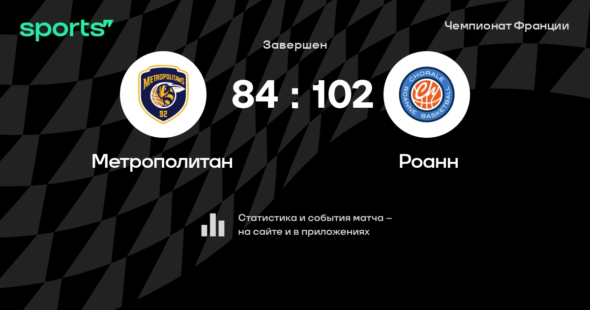 В прошедшем матче в рамках турнира Чемпионат Франции состоялась встреча команд Метрополитан - Роанн в городе на стадионе Palais des Sports Marcel Cerdan