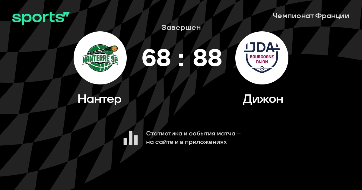 В прошедшем матче в рамках турнира Чемпионат Франции состоялась встреча команд Нантер - Дижон в городе на стадионе Palais des Sports Maurice Thorez
