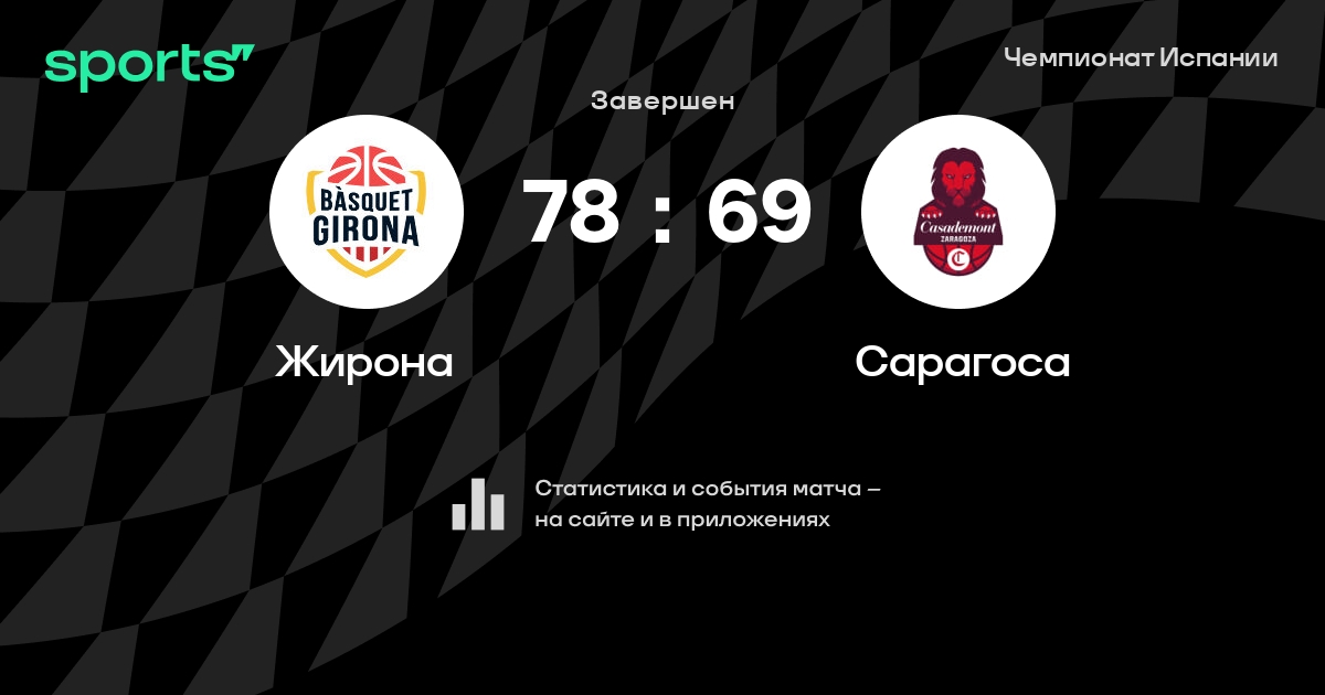 В прошедшем матче в рамках турнира Чемпионат Испании состоялась встреча команд Жирона - Сарагоса в городе на стадионе Pavelló Municipal d'Esports Girona-Fontajau