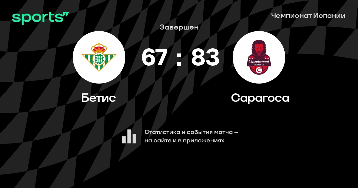 В прошедшем матче в рамках турнира Чемпионат Испании состоялась встреча команд Бетис - Сарагоса в городе на стадионе Palacio Municipal Deportes San Pablo