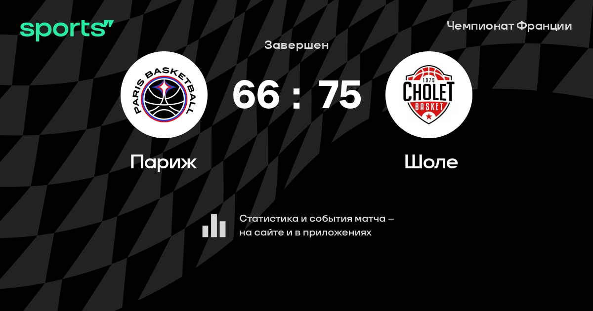 В прошедшем матче в рамках турнира Чемпионат Франции состоялась встреча команд Париж - Шоле в городе на стадионе Halle Georges-Carpentier