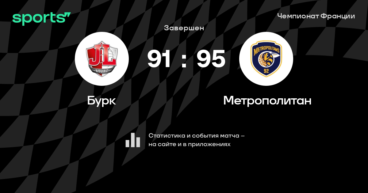 В прошедшем матче в рамках турнира Чемпионат Франции состоялась встреча команд Бурк - Метрополитан в городе на стадионе Ekinox