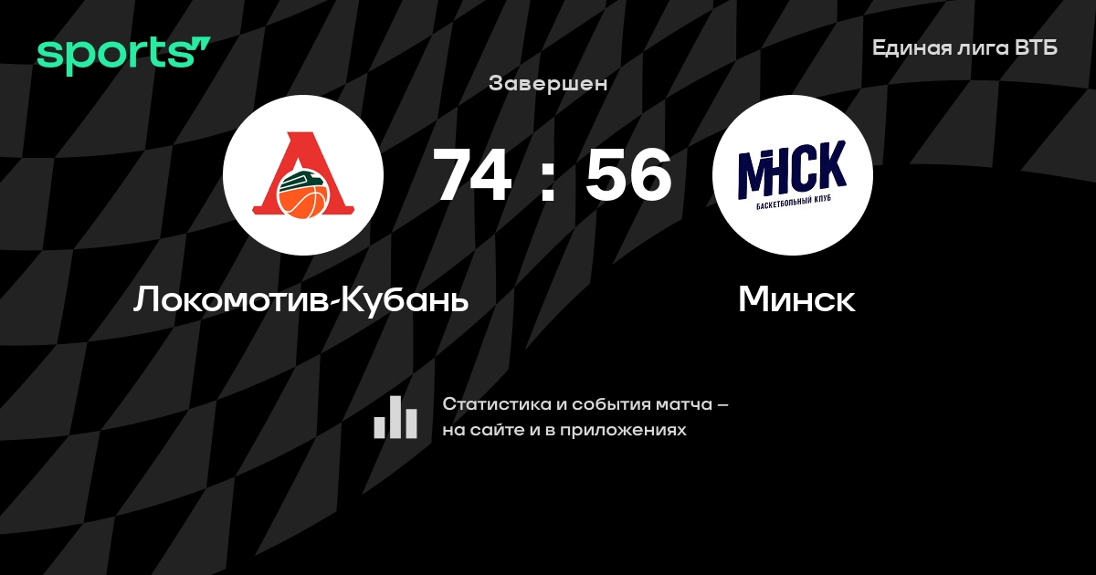 В прошедшем матче в рамках турнира Единая лига ВТБ состоялась встреча команд Локомотив-Кубань - Минск в городе Краснодар (Россия) на стадионе Баскет-холл (вместимость - 7000)