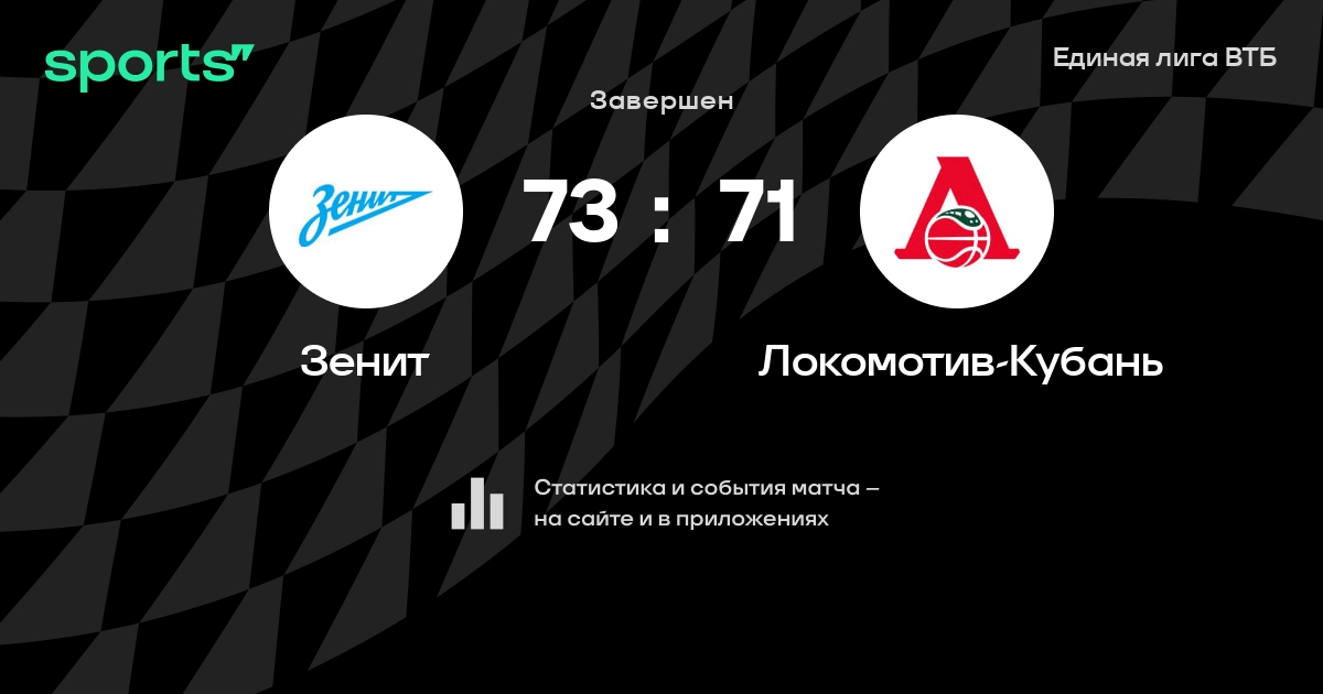 В прошедшем матче в рамках турнира Единая лига ВТБ состоялась встреча команд Зенит - Локомотив-Кубань в городе Санкт-Петербург (Россия) на стадионе КСК Арена (вместимость - 7120)