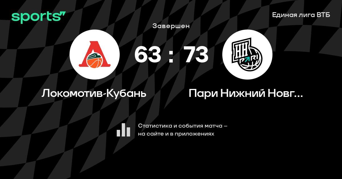 В прошедшем матче в рамках турнира Единая лига ВТБ состоялась встреча команд Локомотив-Кубань - Пари Нижний Новгород в городе Краснодар (Россия) на стадионе Баскет-холл (вместимость - 7000)