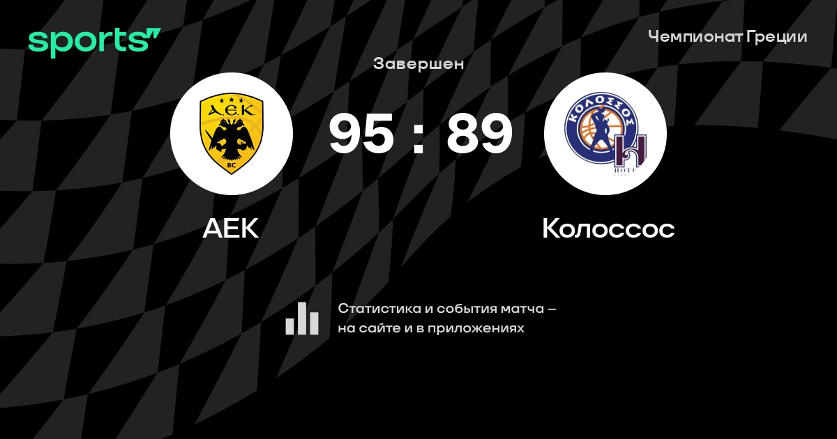 В прошедшем матче в рамках турнира Чемпионат Греции состоялась встреча команд АЕК - Колоссос в городе на стадионе Olimpiako Gymnastirio Ano Liosia
