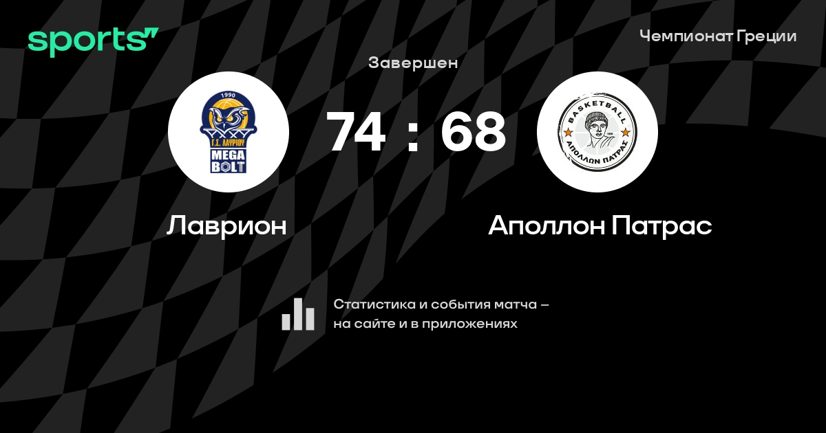 В прошедшем матче в рамках турнира Чемпионат Греции состоялась встреча команд Лаврион - Аполлон Патрас в городе на стадионе Kleisto Gymnastirio Lavriou