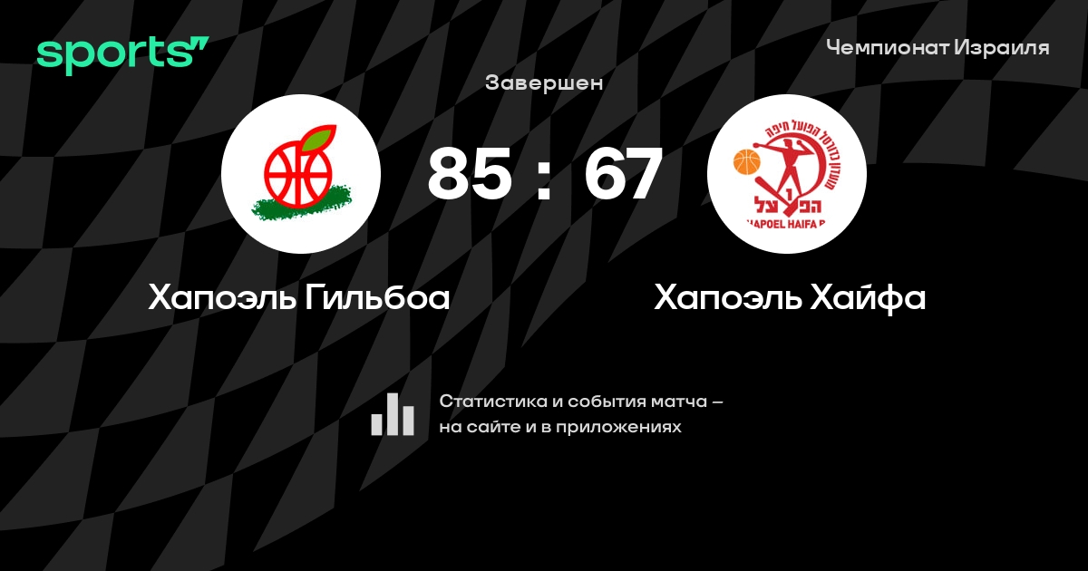 В прошедшем матче в рамках турнира Чемпионат Израиля состоялась встреча команд Хапоэль Гильбоа - Хапоэль Хайфа в городе Gan Ner на стадионе Gan Ner Sports Hall