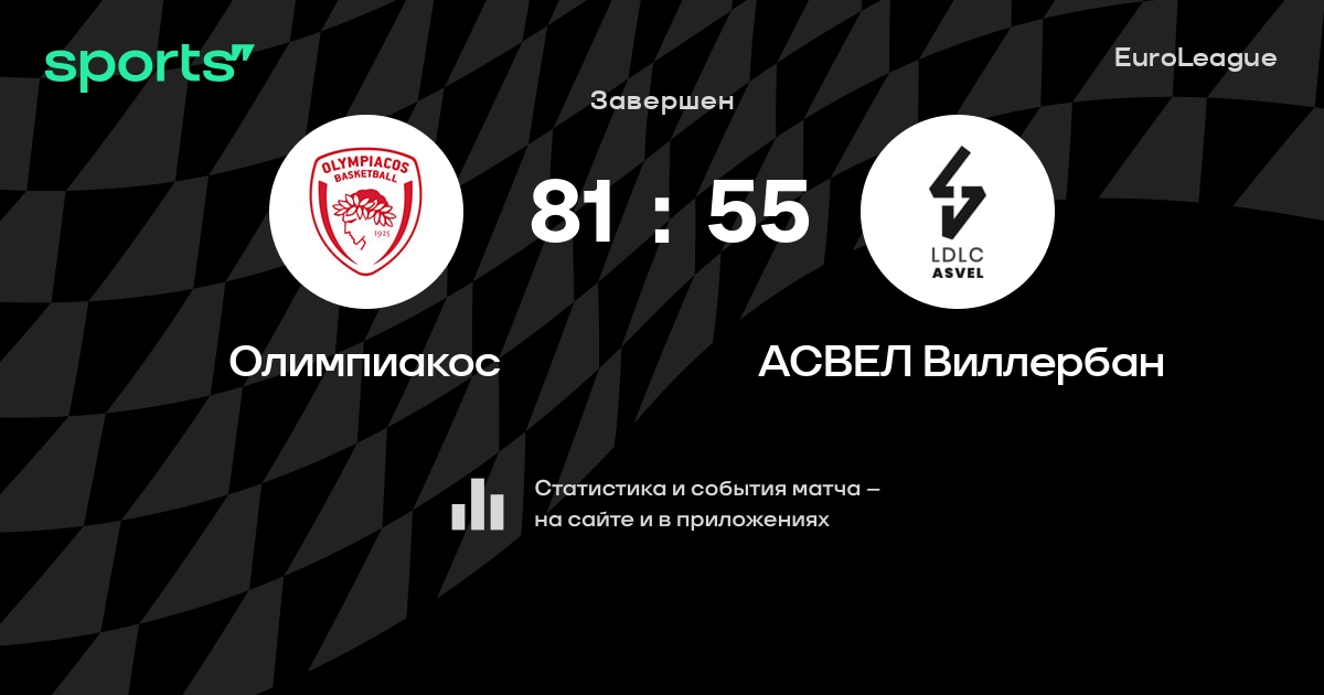 В прошедшем матче в рамках турнира Turkish Airlines EuroLeague состоялась встреча команд Олимпиакос - АСВЕЛ Виллербан в городе Пирей (Греция) на стадионе Арена Мира и Дружбы (вместимость - 12171)