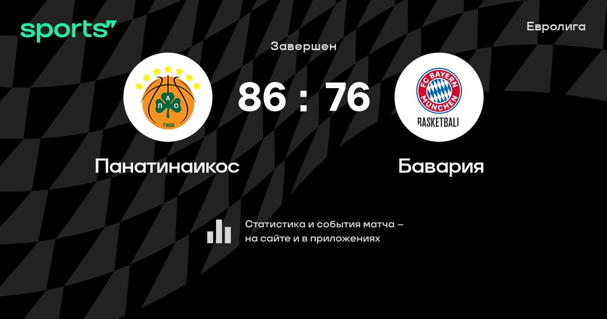 В прошедшем матче в рамках турнира Евролига состоялась встреча команд Панатинаикос - Бавария в городе Афины (Греция) на стадионе Олимпийский спортивный центр (O.A.K.A.) (вместимость - 19250)