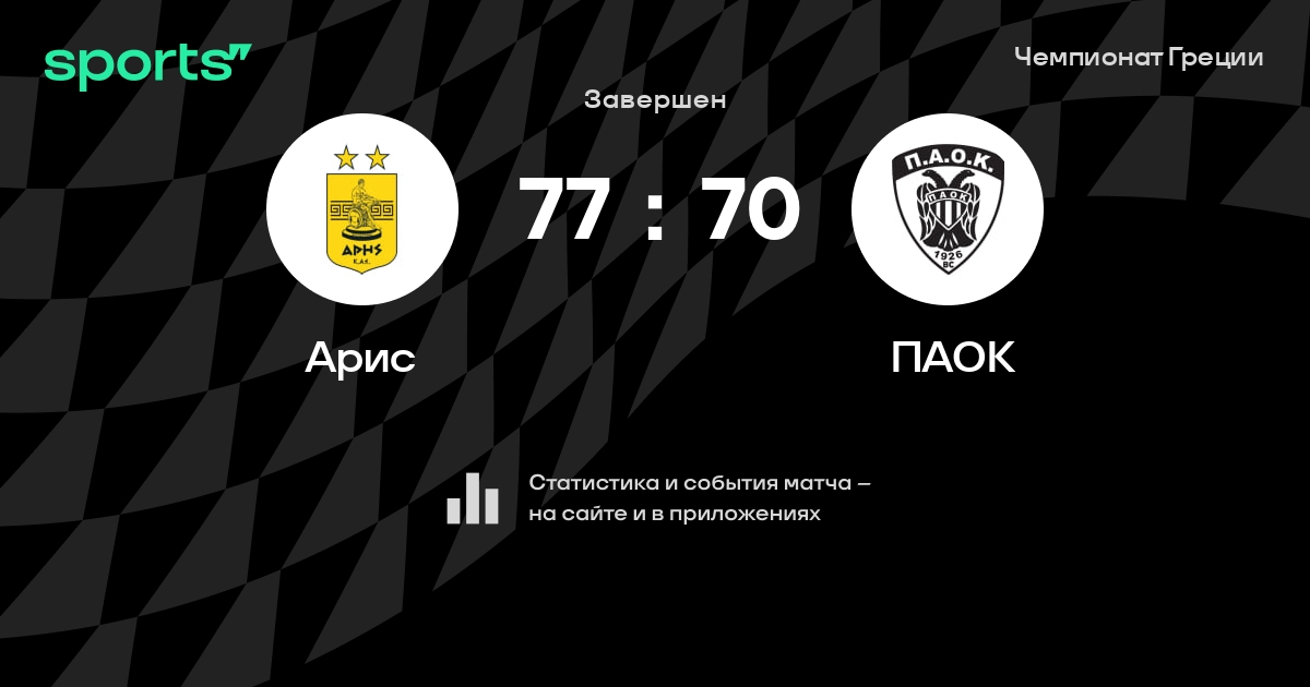 В прошедшем матче в рамках турнира Чемпионат Греции состоялась встреча команд Арис - ПАОК в городе на стадионе Sala Alexandreio Melathron Nikos Galis