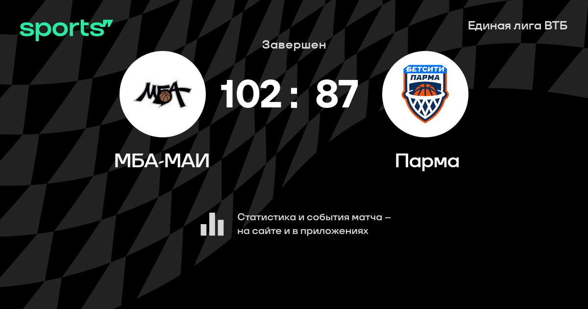 В прошедшем матче в рамках турнира Единая лига ВТБ состоялась встреча команд МБА-МАИ - Парма в городе Москва (Россия) на стадионе Баскет Холл Москва (вместимость - 5000)