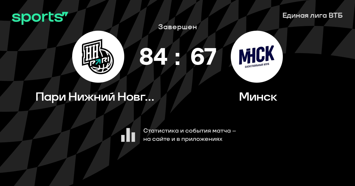 В прошедшем матче в рамках турнира Единая лига ВТБ состоялась встреча команд Пари Нижний Новгород - Минск в городе Нижний Новгород (Россия) на стадионе КРК Нагорный (вместимость - 5600)