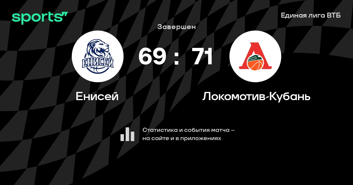 В прошедшем матче в рамках турнира Единая лига ВТБ состоялась встреча команд Енисей - Локомотив-Кубань в городе Красноярск (Россия) на стадионе Арена-Север