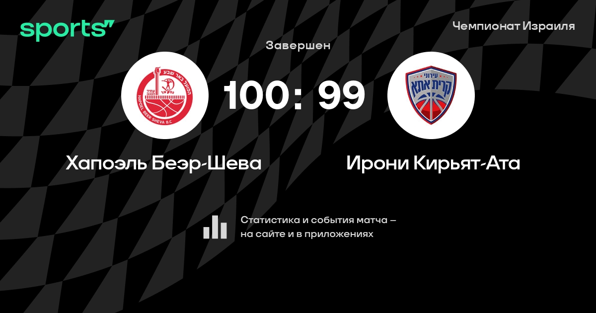 В прошедшем матче в рамках турнира Чемпионат Израиля состоялась встреча команд Хапоэль Беэр-Шева - Ирони Кирьят-Ата в городе Be'er Sheva на стадионе Conch Arena
