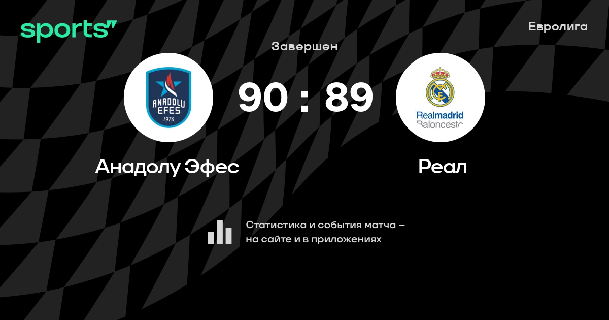 Как прошел матч, смотрите в текстовой трансляции Анадолу Эфес - Реал на Sports.ru