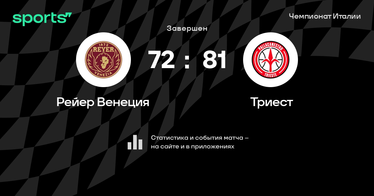 В прошедшем матче в рамках турнира Чемпионат Италии состоялась встреча команд Рейер Венеция - Триест в городе на стадионе Palasport Taliercio