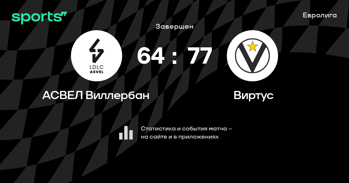 В прошедшем матче в рамках турнира Евролига состоялась встреча команд АСВЕЛ Виллербан - Виртус в городе Виллербанн (Франция) на стадионе Астробаль (вместимость - 5556)