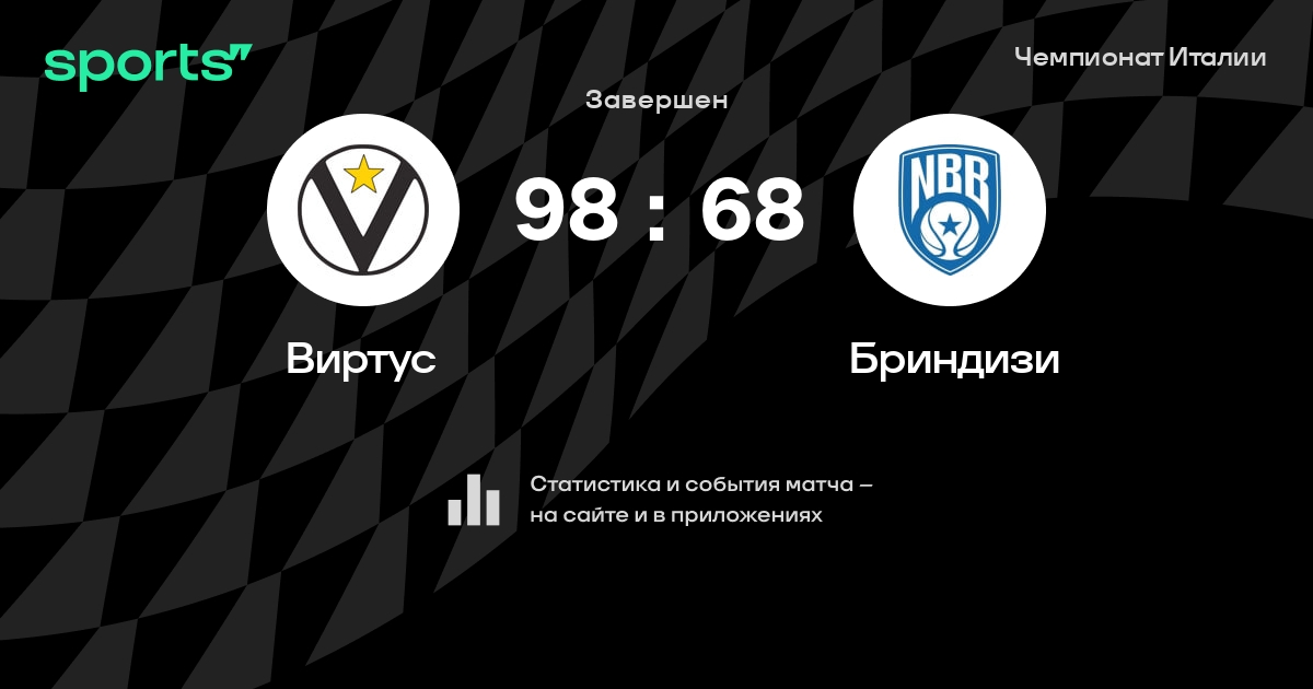 В прошедшем матче в рамках турнира Чемпионат Италии состоялась встреча команд Виртус - Бриндизи в городе Болонья (Италия) на стадионе ПалаДоцца (вместимость - 5570)