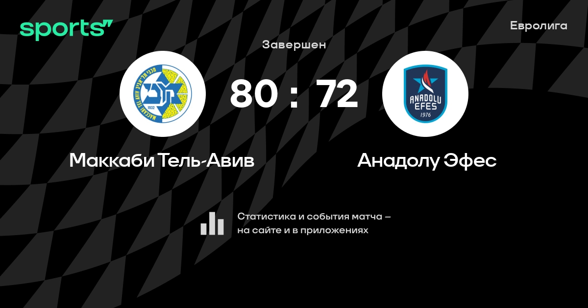 В прошедшем матче в рамках турнира Евролига состоялась встреча команд Маккаби Тель-Авив - Анадолу Эфес в городе Тель-Авив (Израиль) на стадионе Менора-Мивтахим Арена (вместимость - 11700)