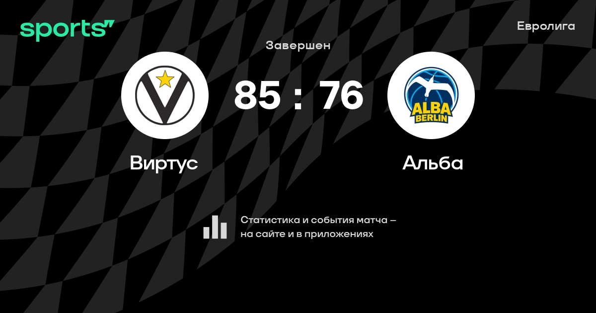 В прошедшем матче в рамках турнира EuroLeague состоялась встреча команд Виртус - Альба в городе Болонья (Италия) на стадионе Виртус Арена (вместимость - 9980)