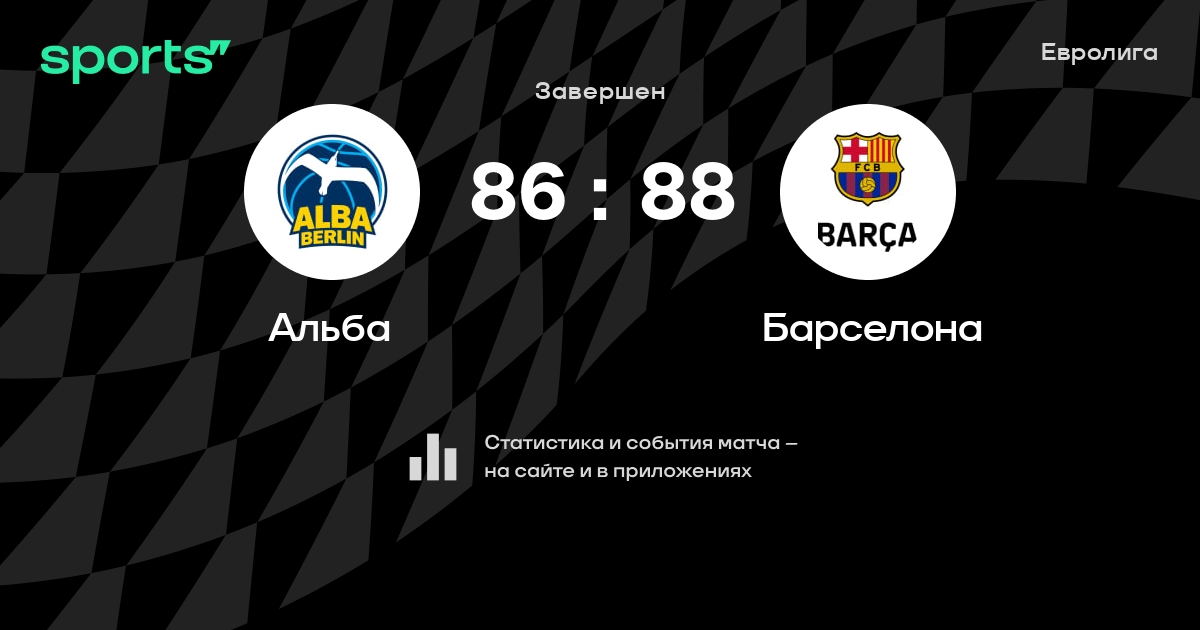 В прошедшем матче в рамках турнира Евролига состоялась встреча команд Альба - Барселона в городе Берлин (Германия) на стадионе Убер Арена (вместимость - 16000)