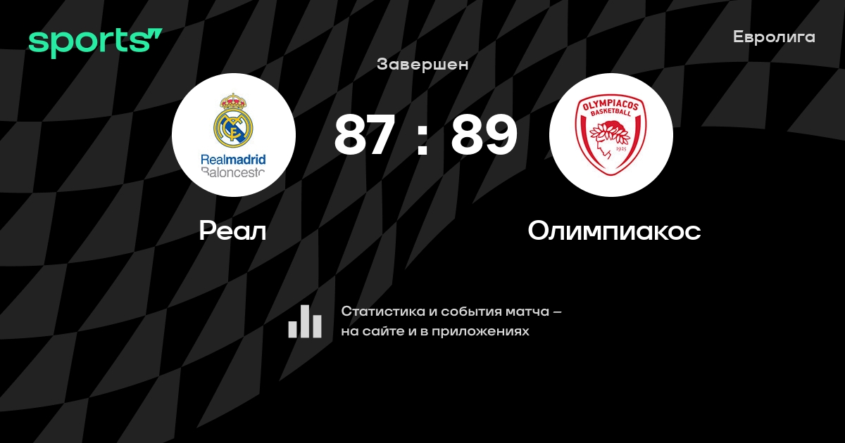 В прошедшем матче в рамках турнира Евролига состоялась встреча команд Реал - Олимпиакос в городе Мадрид (Испания) на стадионе Мовистар Арена (вместимость - 15000)