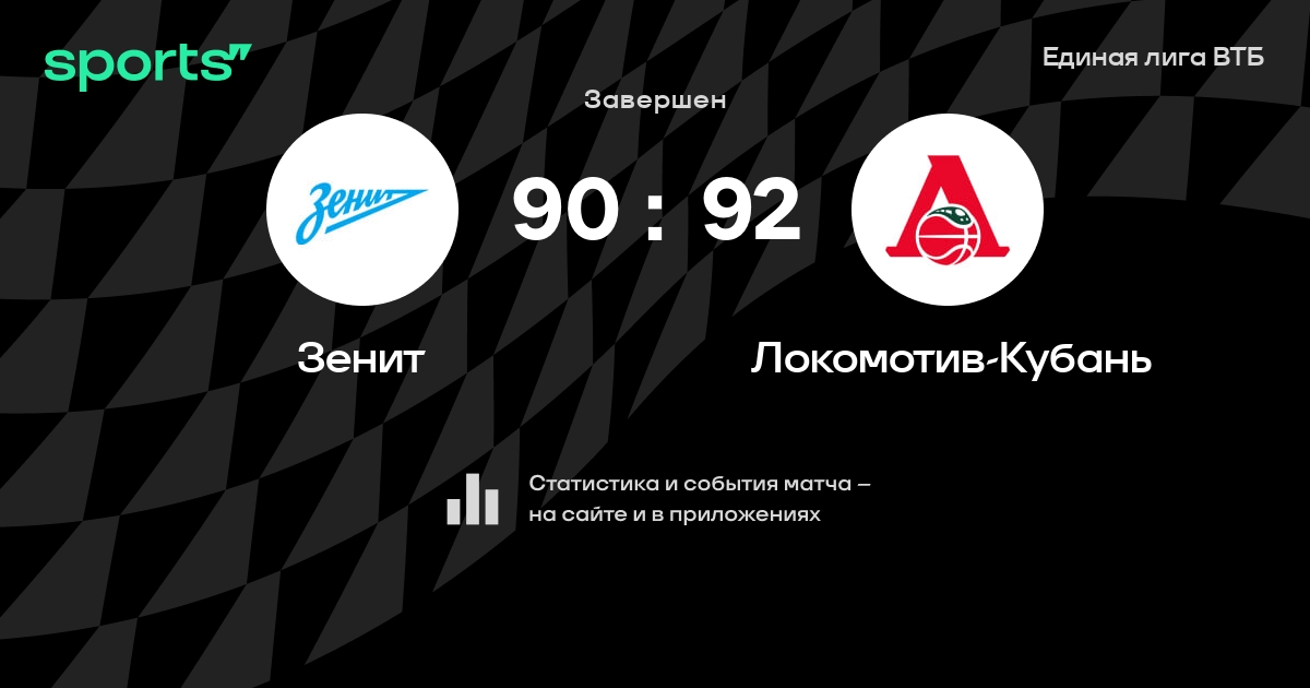 В прошедшем матче в рамках турнира Единая лига ВТБ состоялась встреча команд Зенит - Локомотив-Кубань в городе Санкт-Петербург (Россия) на стадионе КСК Арена (вместимость - 7120)