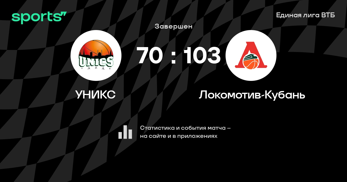 В прошедшем матче в рамках турнира Единая лига ВТБ состоялась встреча команд УНИКС - Локомотив-Кубань в городе Казань (Россия) на стадионе Баскет-холл (вместимость - 7000)