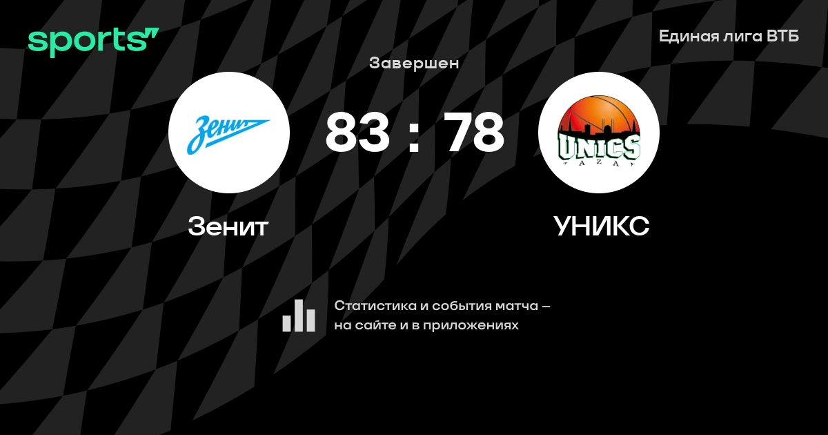 В прошедшем матче в рамках турнира Единая лига ВТБ состоялась встреча команд Зенит - УНИКС в городе Санкт-Петербург (Россия) на стадионе КСК Арена (вместимость - 7120)