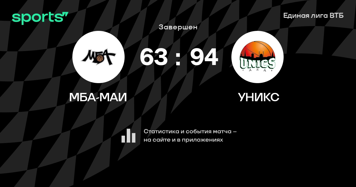 В прошедшем матче в рамках турнира Единая лига ВТБ состоялась встреча команд МБА-МАИ - УНИКС в городе Москва (Россия) на стадионе Баскет Холл Москва (вместимость - 5000)