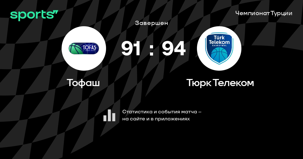 В прошедшем матче в рамках турнира Чемпионат Турции состоялась встреча команд Тофаш - Тюрк Телеком в городе на стадионе Tofaş Spor Salonu