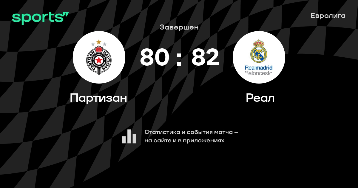 В прошедшем матче в рамках турнира Евролига (Четвертьфинал) состоялась встреча команд Партизан - Реал в городе Белград (Сербия) на стадионе Белград Арена (вместимость - 22386)
