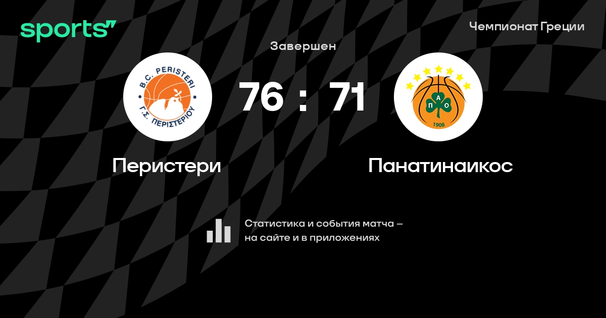 В прошедшем матче в рамках турнира Чемпионат Греции (Полуфинал) состоялась встреча команд Перистери - Панатинаикос в городе на стадионе Kleisto Andreas Papandreou