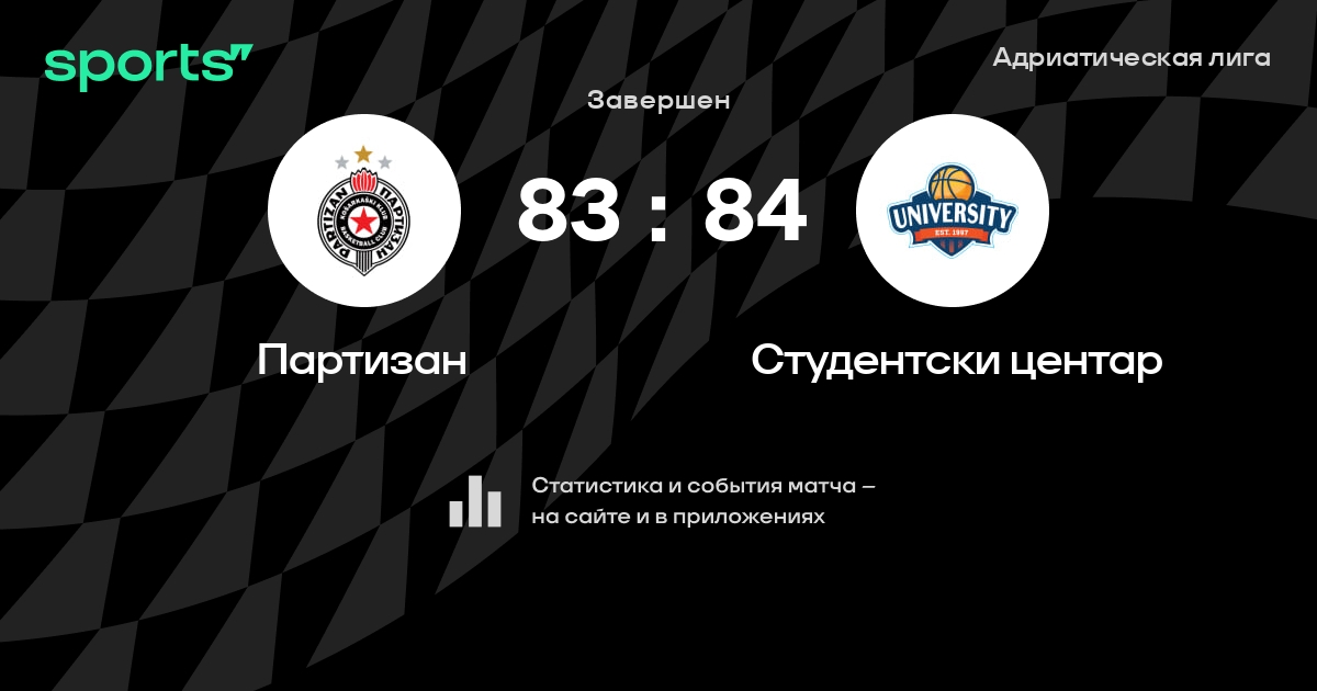 В прошедшем матче в рамках турнира Адриатическая лига (Четвертьфинал) состоялась встреча команд Партизан - Студентски центар в городе Белград (Сербия) на стадионе Александар Николич Холл (вместимость - 7000)