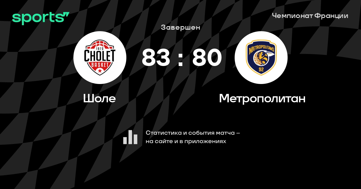 В прошедшем матче в рамках турнира Чемпионат Франции (Четвертьфинал) состоялась встреча команд Шоле - Метрополитан в городе на стадионе Salle de la Meilleraie