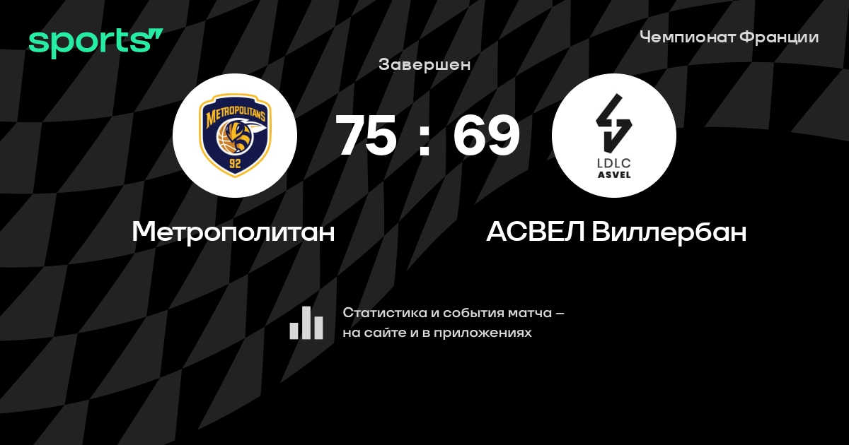 В прошедшем матче в рамках турнира Чемпионат Франции (Полуфинал) состоялась встреча команд Метрополитан - АСВЕЛ Виллербан в городе на стадионе Palais des Sports Marcel Cerdan