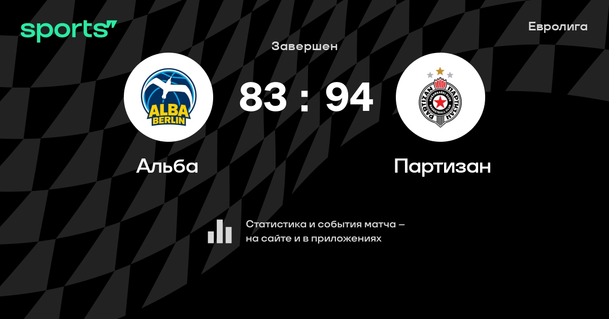 В прошедшем матче в рамках турнира Евролига состоялась встреча команд Альба - Партизан в городе Берлин (Германия) на стадионе Убер Арена (вместимость - 16000)
