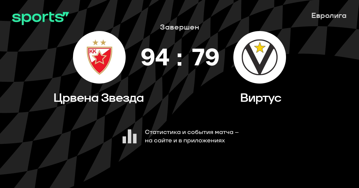 В прошедшем матче в рамках турнира Евролига состоялась встреча команд Црвена Звезда - Виртус в городе Белград (Сербия) на стадионе Белград Арена (вместимость - 22386)