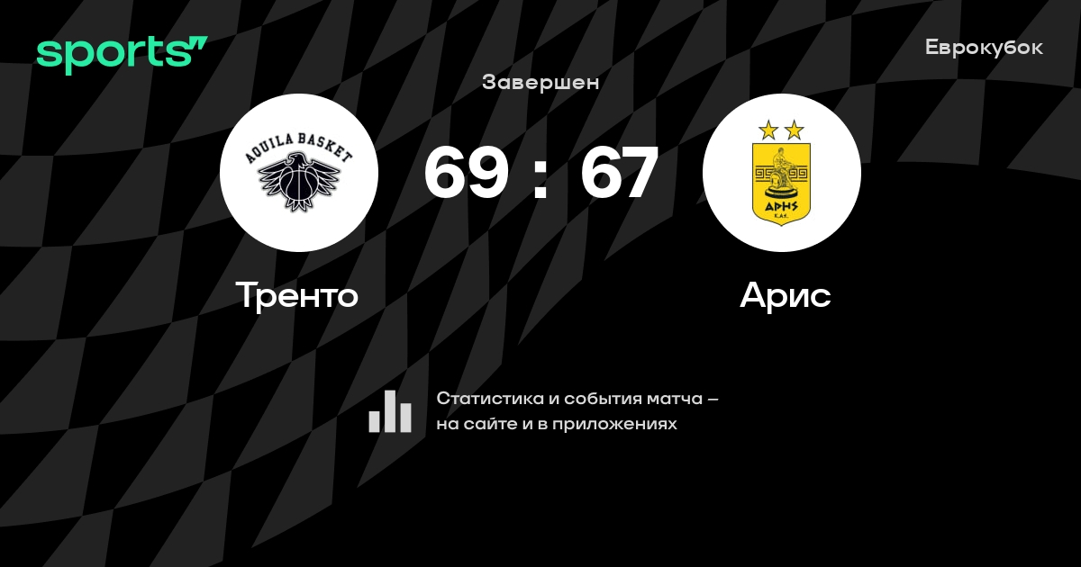 В прошедшем матче в рамках турнира Еврокубок состоялась встреча команд Тренто - Арис в городе на стадионе PalaTrento