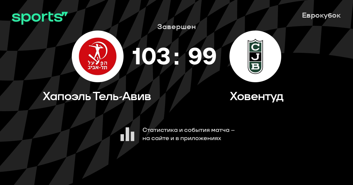 В прошедшем матче в рамках турнира Еврокубок состоялась встреча команд Хапоэль Тель-Авив - Ховентуд в городе Белград (Сербия) на стадионе Александар Николич Холл (вместимость - 7000)