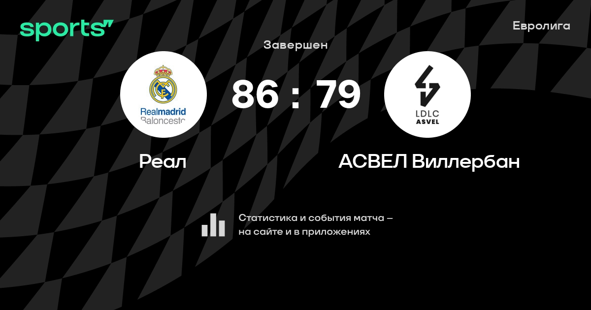 В прошедшем матче в рамках турнира Евролига состоялась встреча команд Реал - АСВЕЛ Виллербан в городе Мадрид (Испания) на стадионе Мовистар Арена (вместимость - 15000)