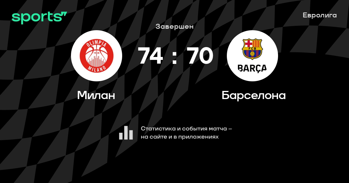 В прошедшем матче в рамках турнира Евролига состоялась встреча команд Милан - Барселона в городе Ассаго (Италия) на стадионе Униполь Форум (вместимость - 11200)