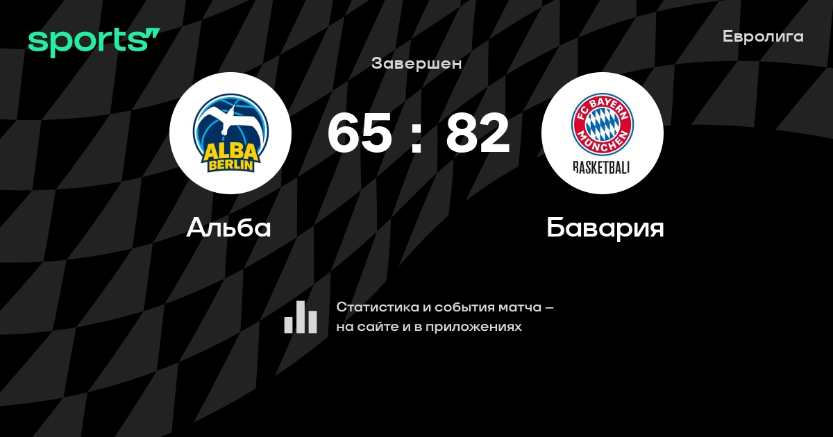 В прошедшем матче в рамках турнира Евролига состоялась встреча команд Альба - Бавария в городе Берлин (Германия) на стадионе Убер Арена (вместимость - 16000)
