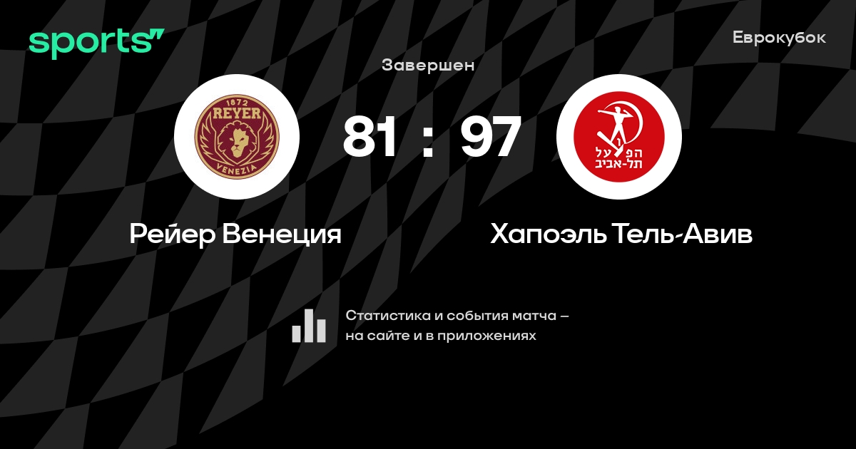 Как прошел матч, смотрите в текстовой трансляции Рейер Венеция - Хапоэль Тель-Авив на Sports.ru