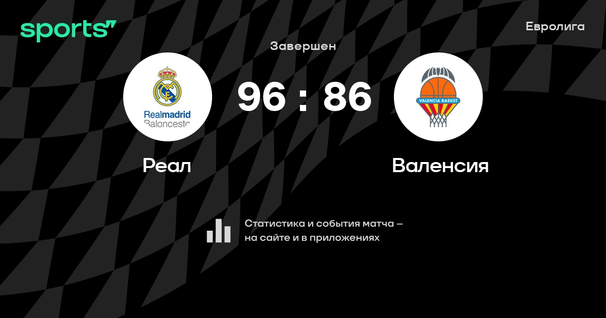 В прошедшем матче в рамках турнира Евролига состоялась встреча команд Реал - Валенсия в городе Мадрид (Испания) на стадионе Мовистар Арена (вместимость - 15000)