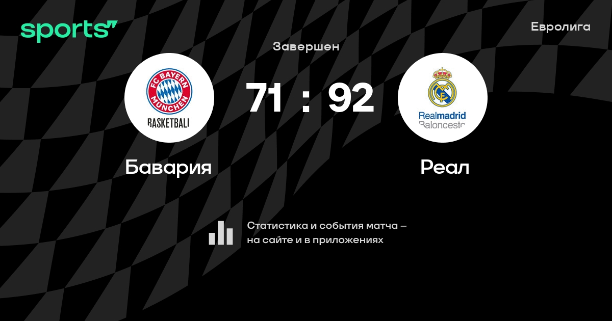 В прошедшем матче в рамках турнира Евролига состоялась встреча команд Бавария - Реал в городе Мюнхен (Германия) на стадионе BMW Парк (вместимость - 6700)