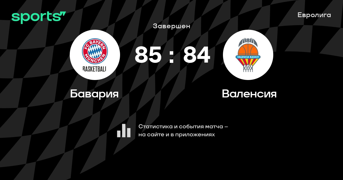 В прошедшем матче в рамках турнира Евролига состоялась встреча команд Бавария - Валенсия в городе Мюнхен (Германия) на стадионе BMW Парк (вместимость - 6700)