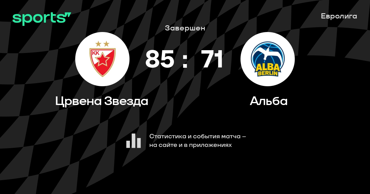 В прошедшем матче в рамках турнира Евролига состоялась встреча команд Црвена Звезда - Альба в городе Белград (Сербия) на стадионе Белград Арена (вместимость - 22386)