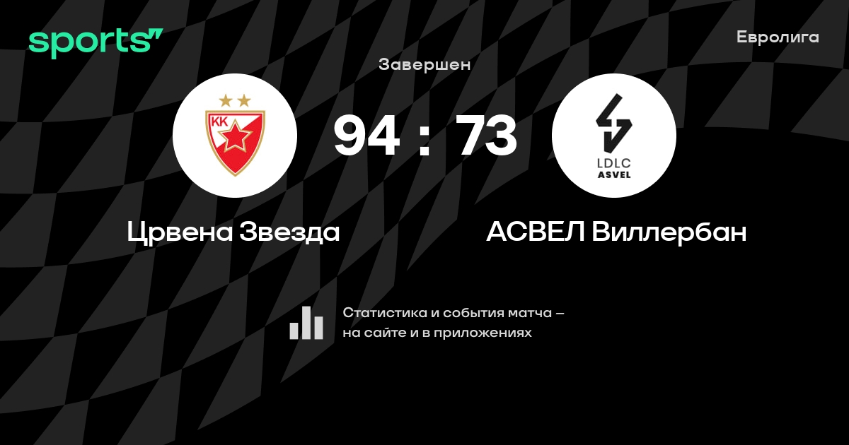 В прошедшем матче в рамках турнира Евролига состоялась встреча команд Црвена Звезда - АСВЕЛ Виллербан в городе Белград (Сербия) на стадионе Белград Арена (вместимость - 22386)